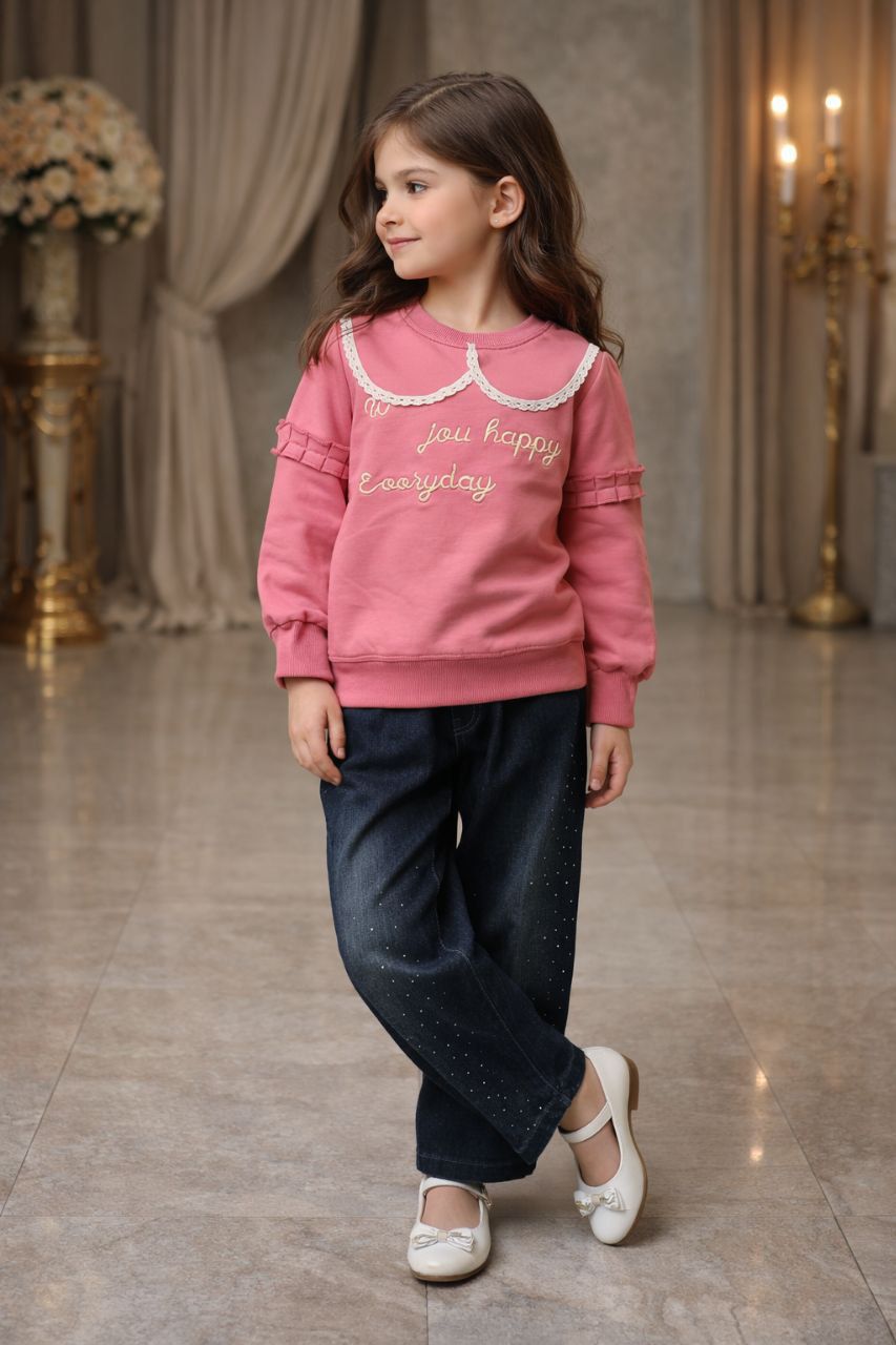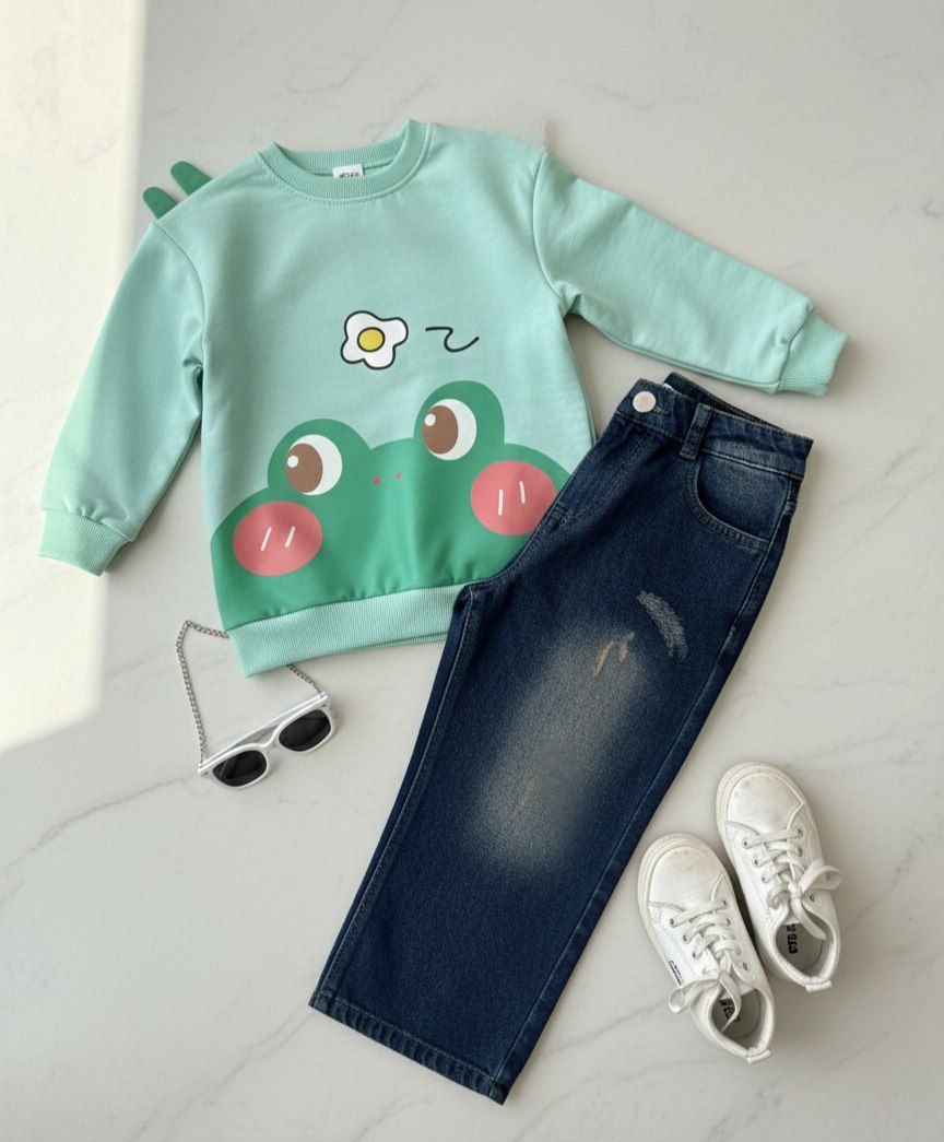 ناموجودست بچگانه بلوز شلوار اسپرت فانتزی جنس بلوزدورس دونخ شلوار پارچه جین آنزیم شسته شده سایز۳۵ تا۴۵