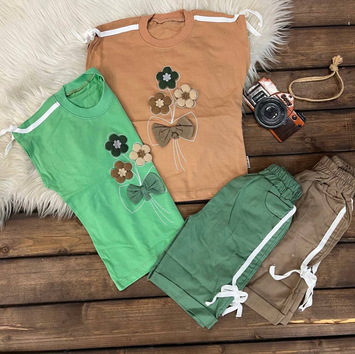 ست تیشرت شلوارک بچگانه چیندار گل برجسته سایز ۴۰ تا ۵۵