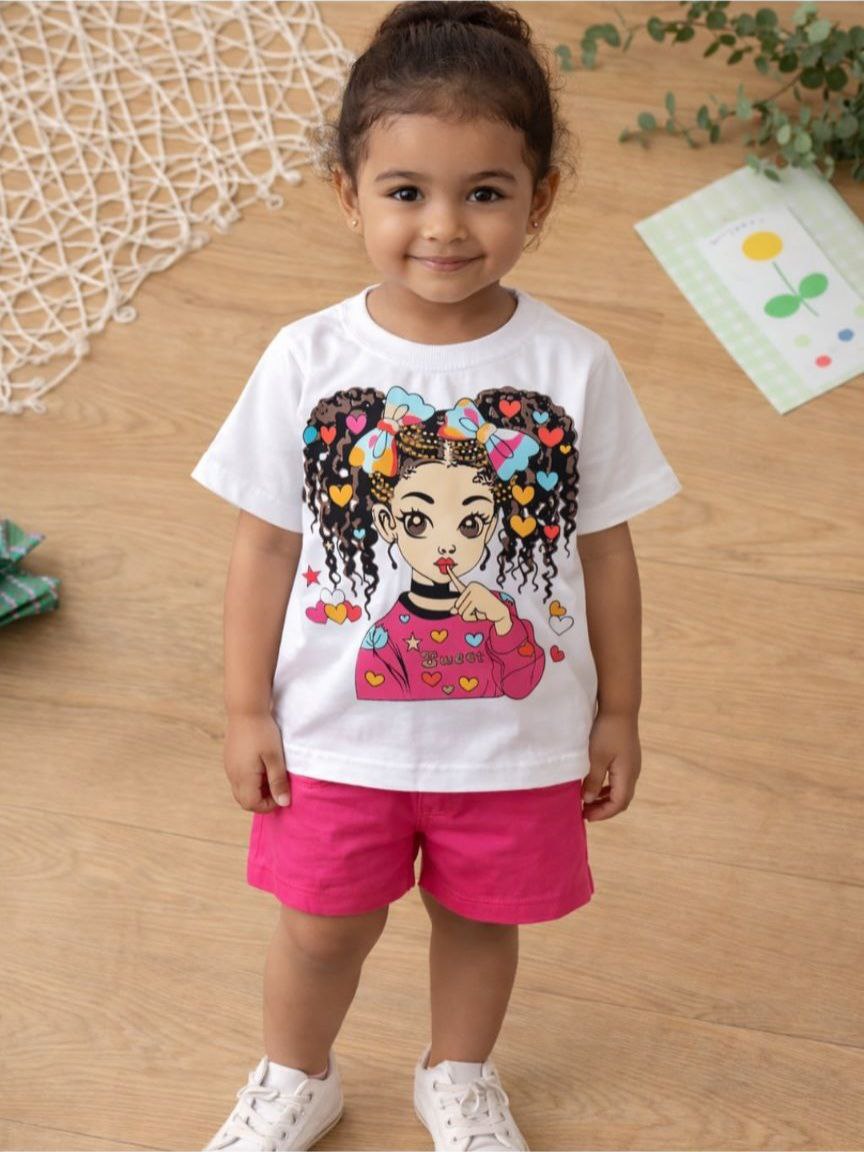 ناموجودتیشرت شلوارک دخترانه طرح دختر موفرفری جنس نخ پنبه سایز ۴۰ تا ۵۵
