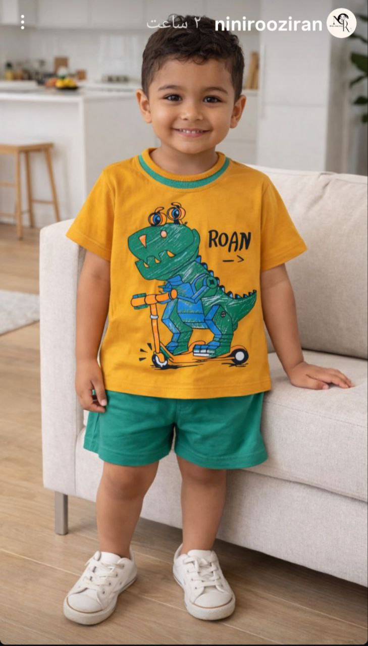ناموجودتیشرت شلوارک بچگانه طرح دایناسور اسکوتر سوار جنس نخ پنبه سایز از ۴۰ تت ۵۵