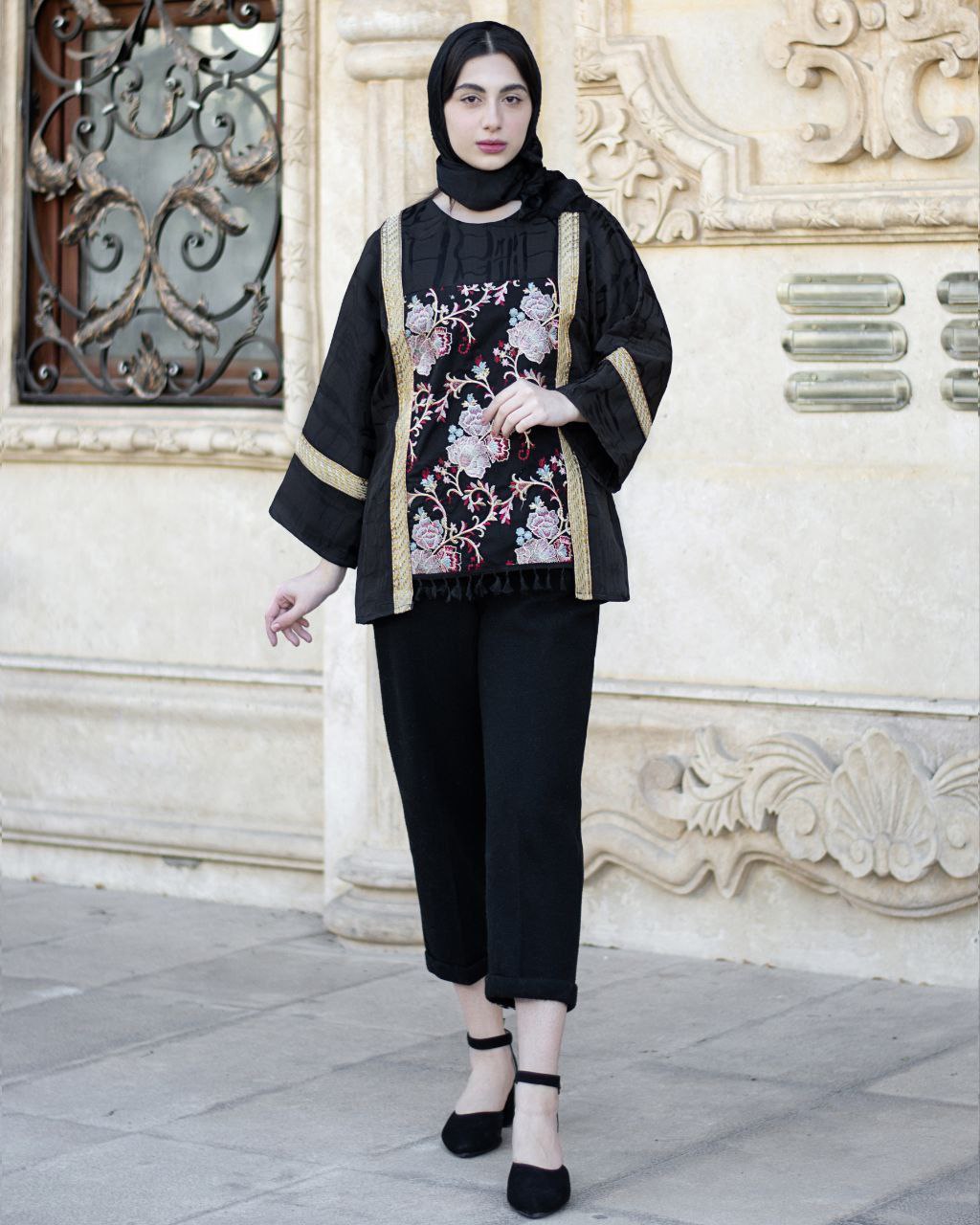 شومیز زنانه ترکیبی سوزن دوزی پاگیس سایز فری از ۳۸ تا ۴۸