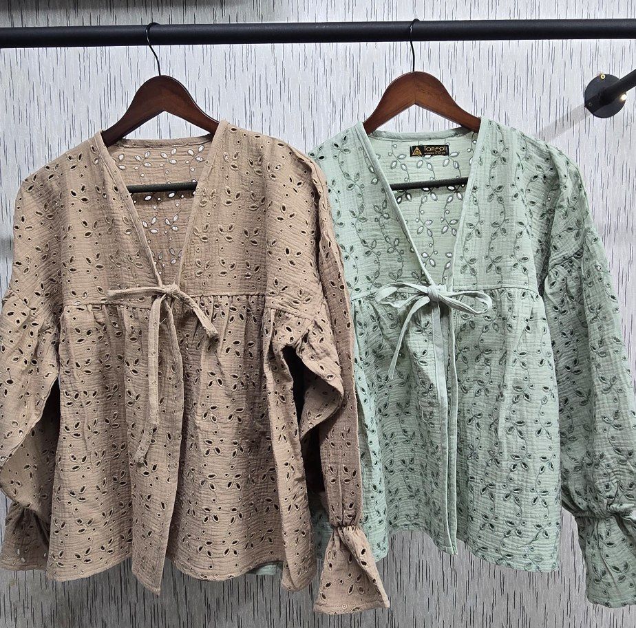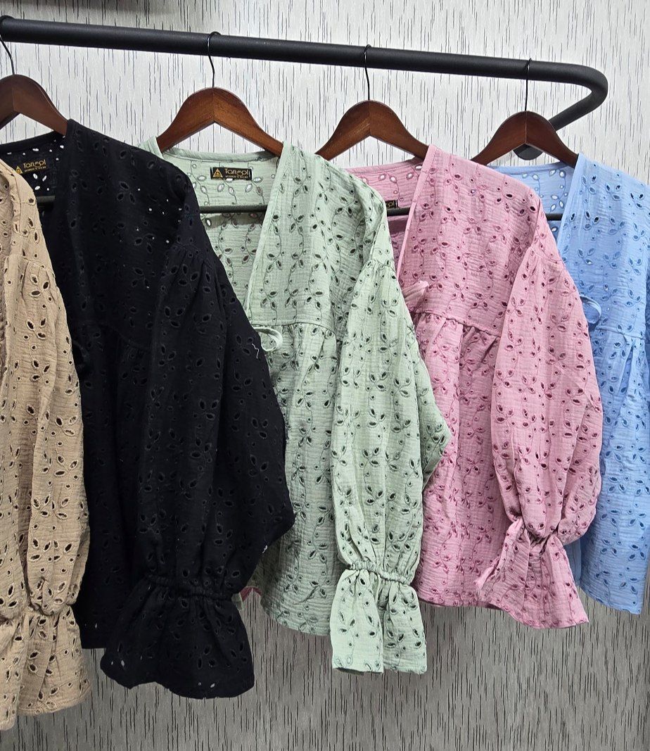 شومیز زنانه دبل فیس عروسکی سوزن دوزی قد ۶۵ سانت سایز فری تا ۴۸