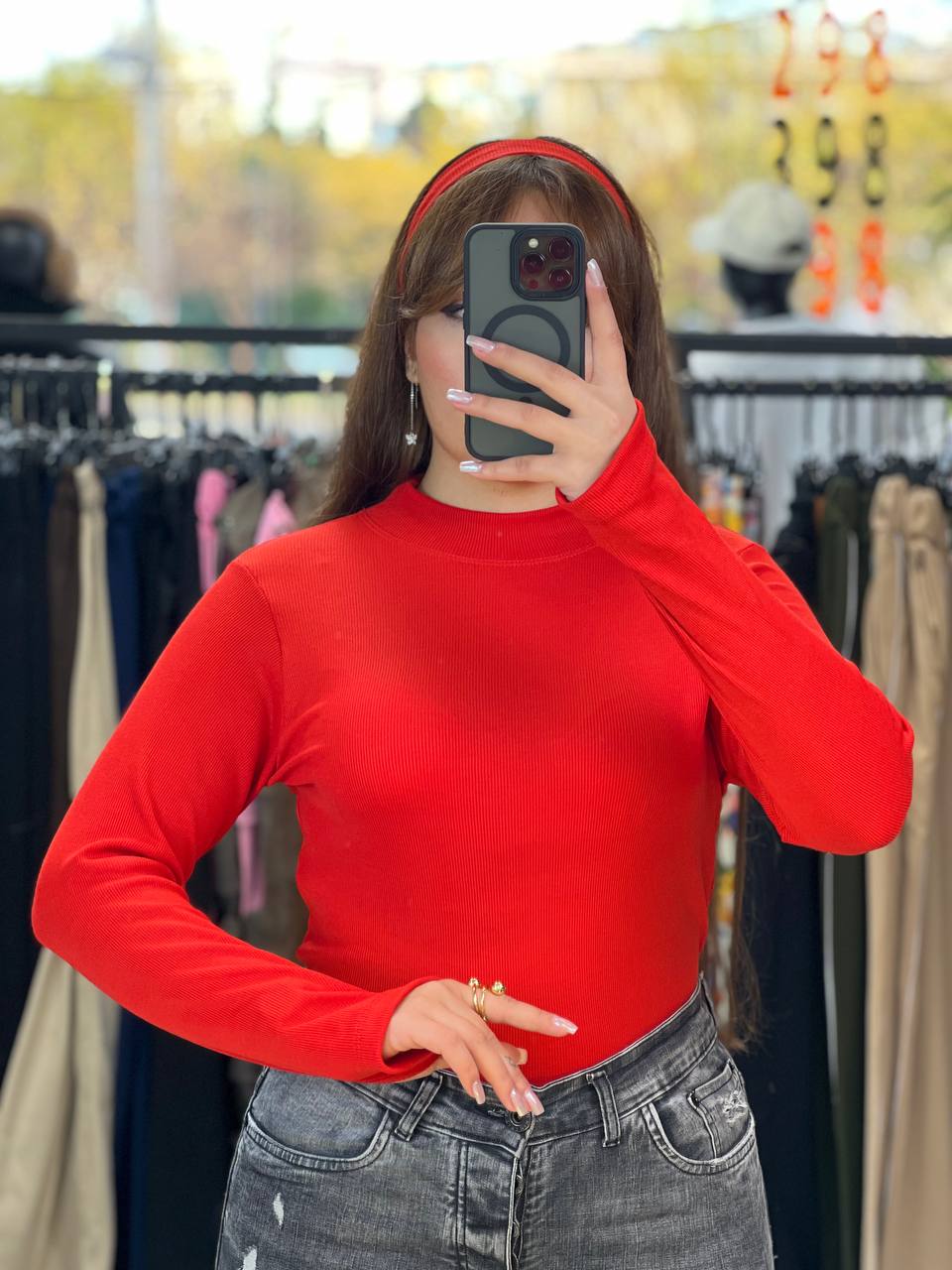 بلوز زنانه یقه ۵ سانت همراه هد بند رنگ قرمز فری سایز ۳۸ تا ۴۴